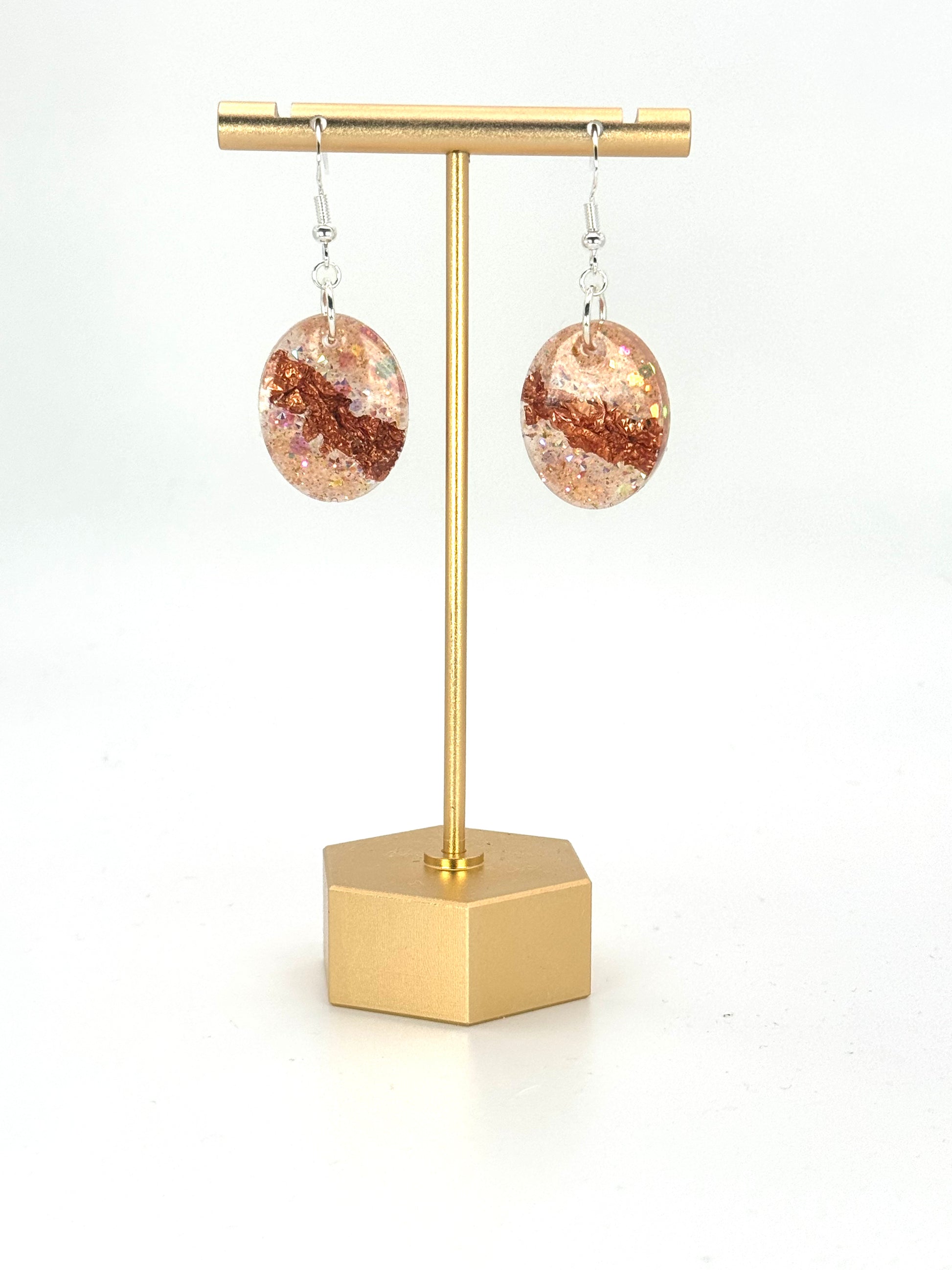Color: Silver finish. Copper embeds with copper glitter resin.