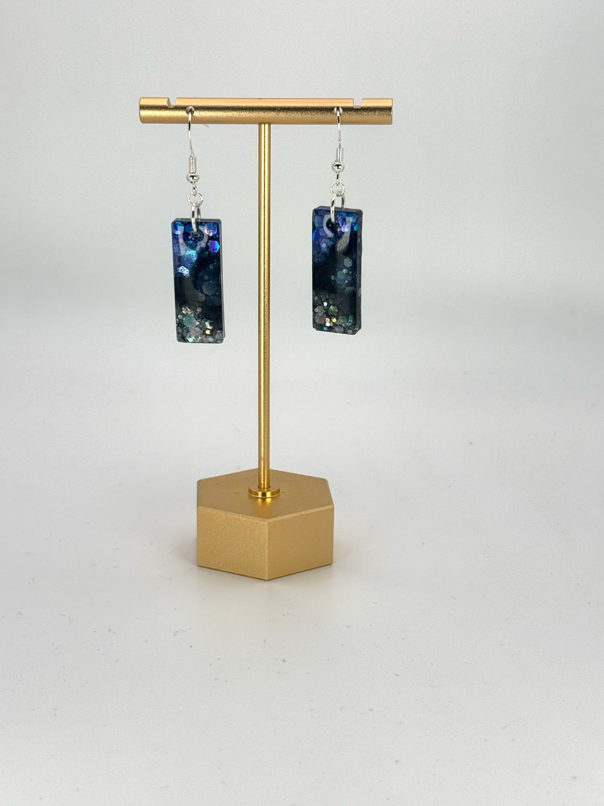 Color: Silver finish.Blue, silver & purple holographic glitter with black resin.