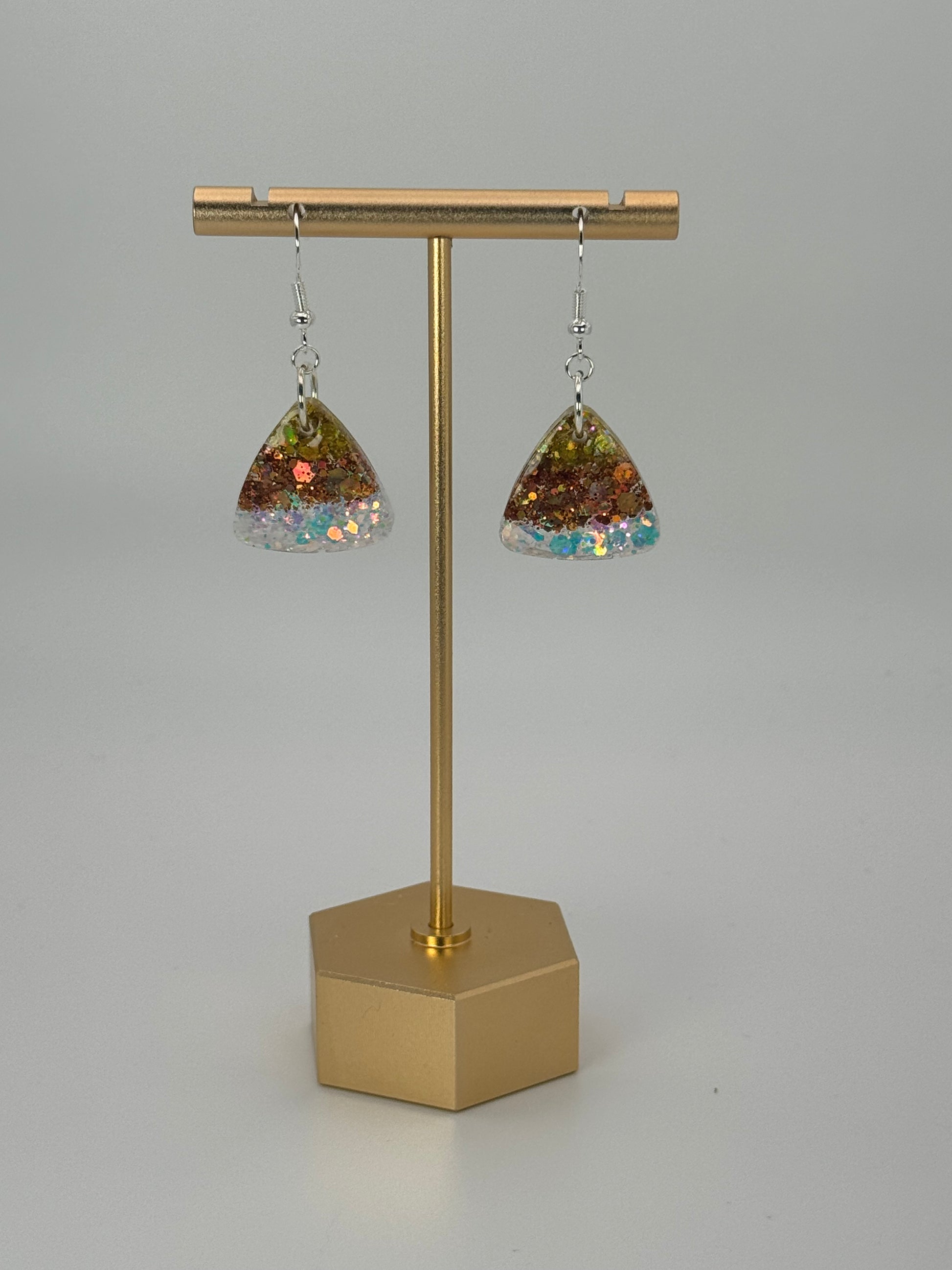 Color: Silver finish. Orange, yellow & white glitter resin.