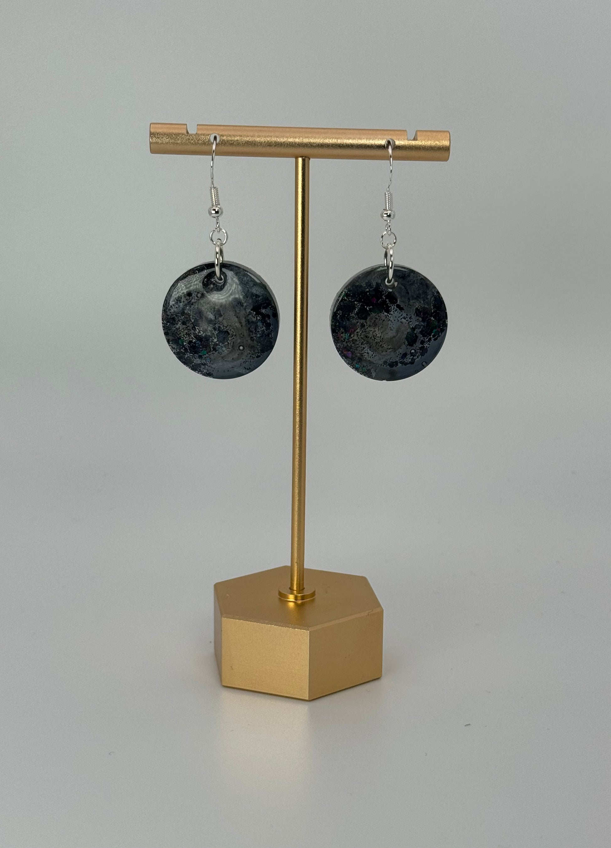 Color: Silver finish. Black glitter, grey mica & black resin.