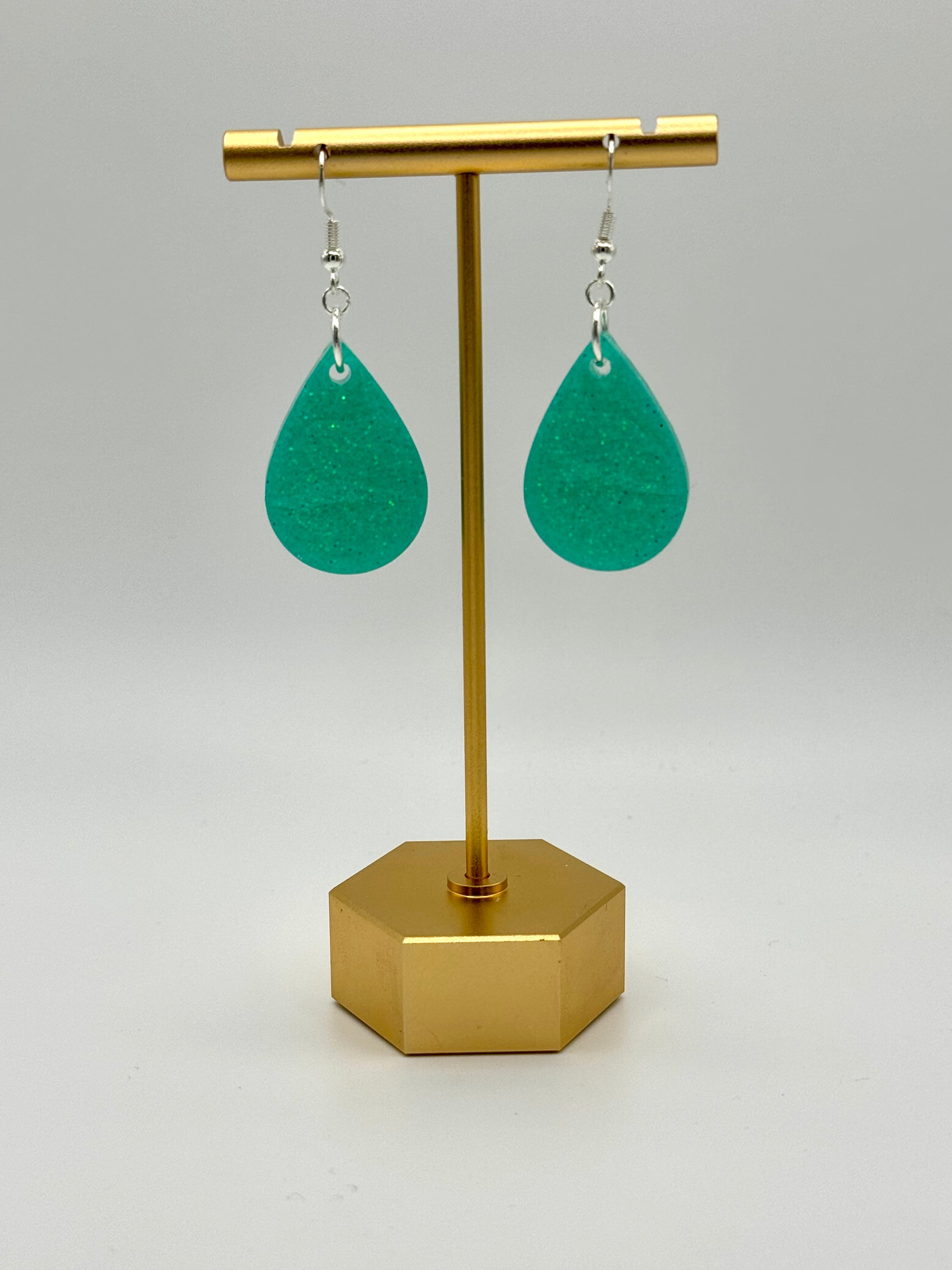 Color: Silver finish. Teal resin.