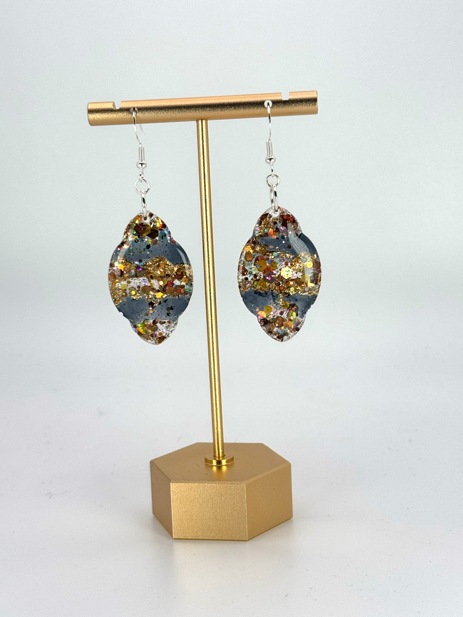 Color: Silver finish. Gold holographic glitter, black resin & gold embeds.