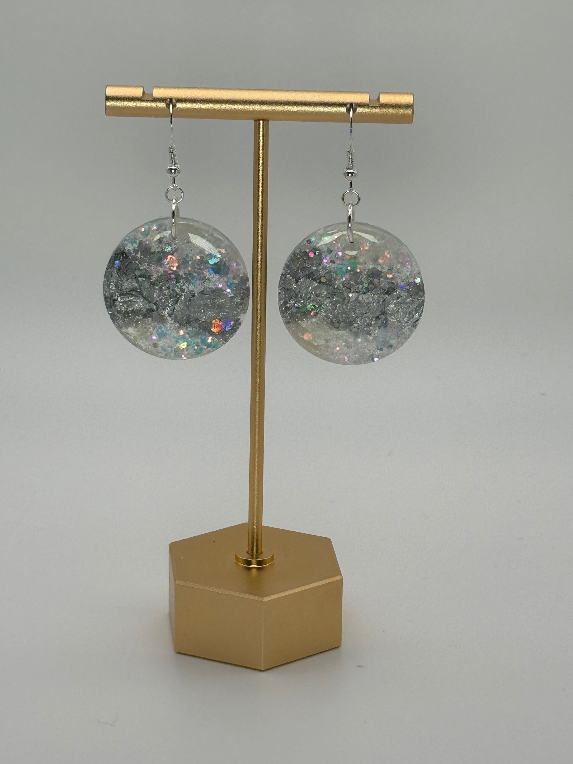 Color: Silver finish. White glitter, white mica & silver embeds.