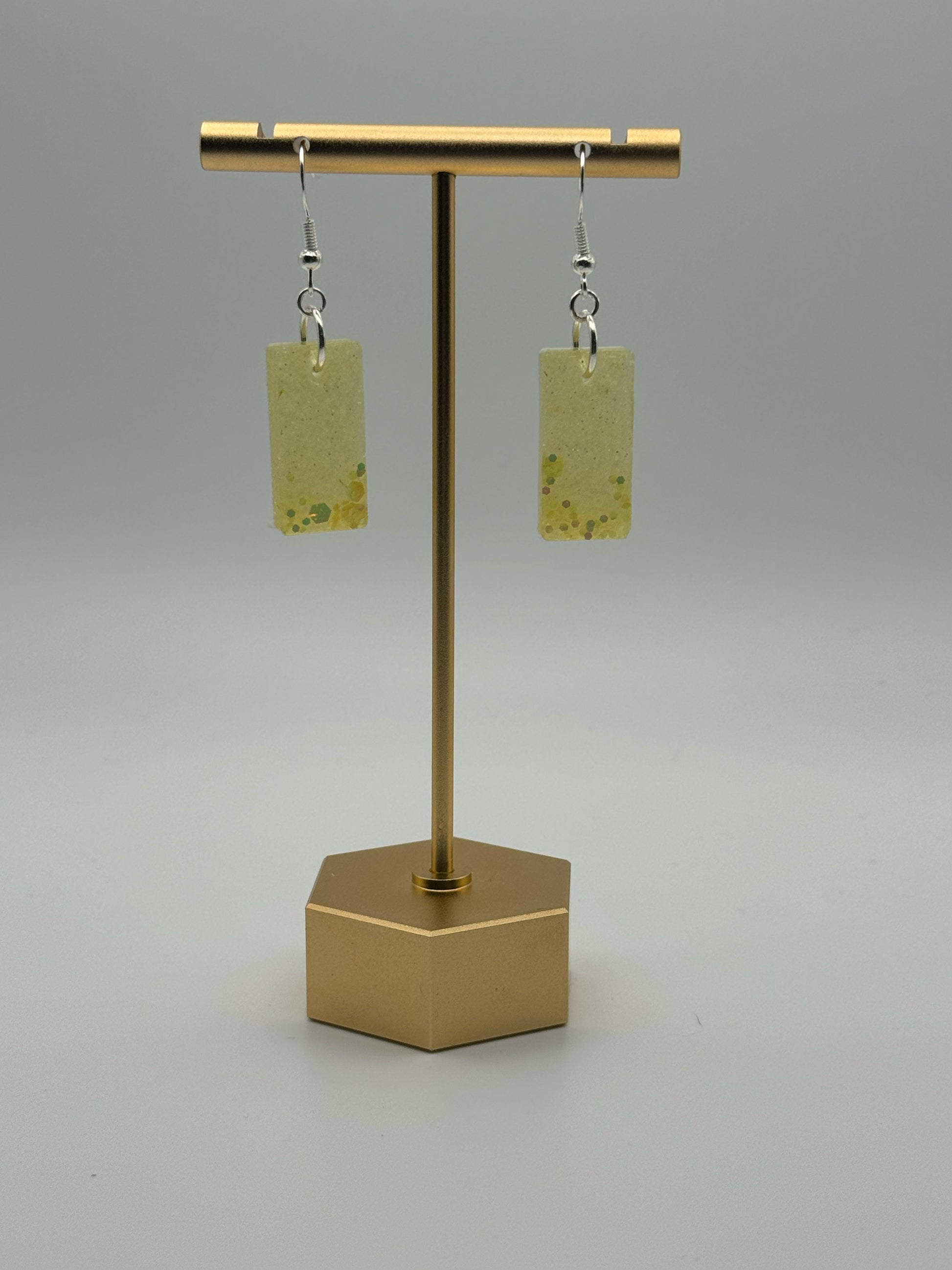 Color: Silver finish. Yellow multi-colored glitter resin.