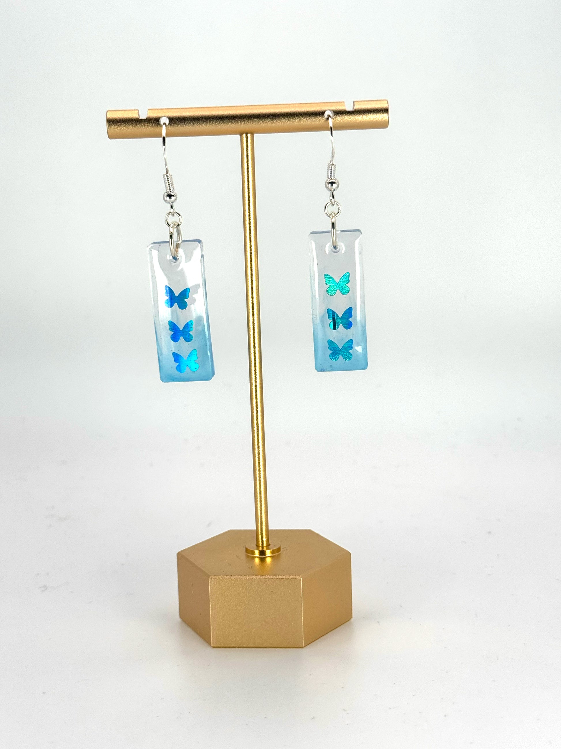 Color: Silver finish. Blue & clear resin with silver butterflies.