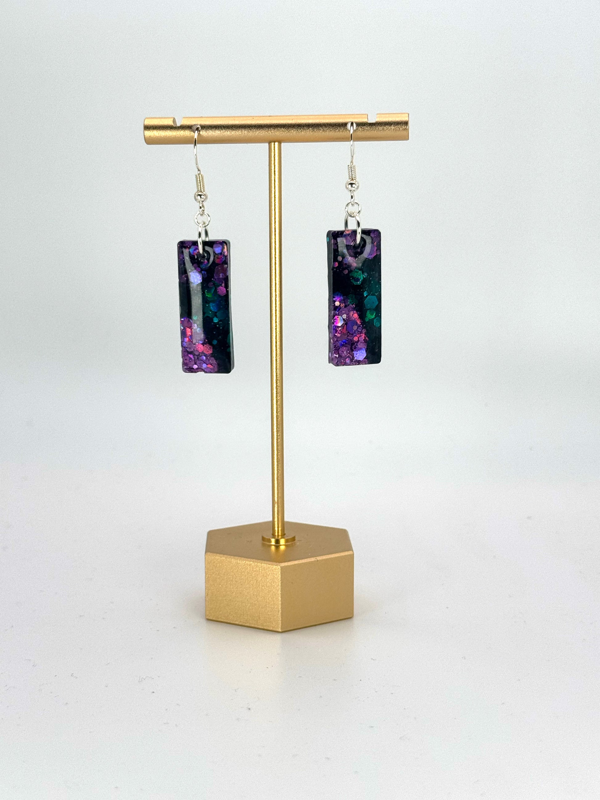 Color: Silver finish. Teal, silver & purple holographic glitter with black resin.