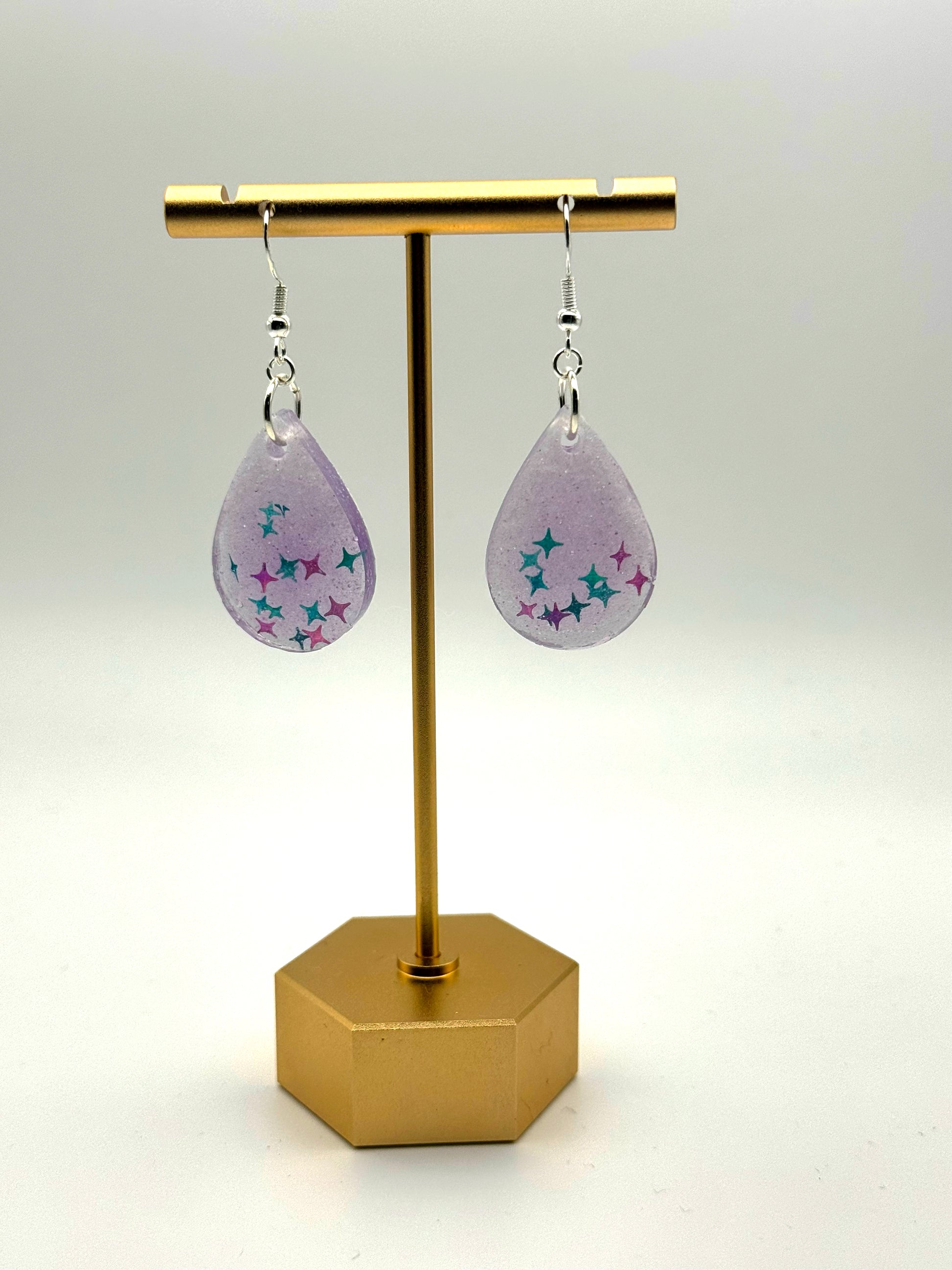 Color: Silver finish. Purple, teal & white resin.